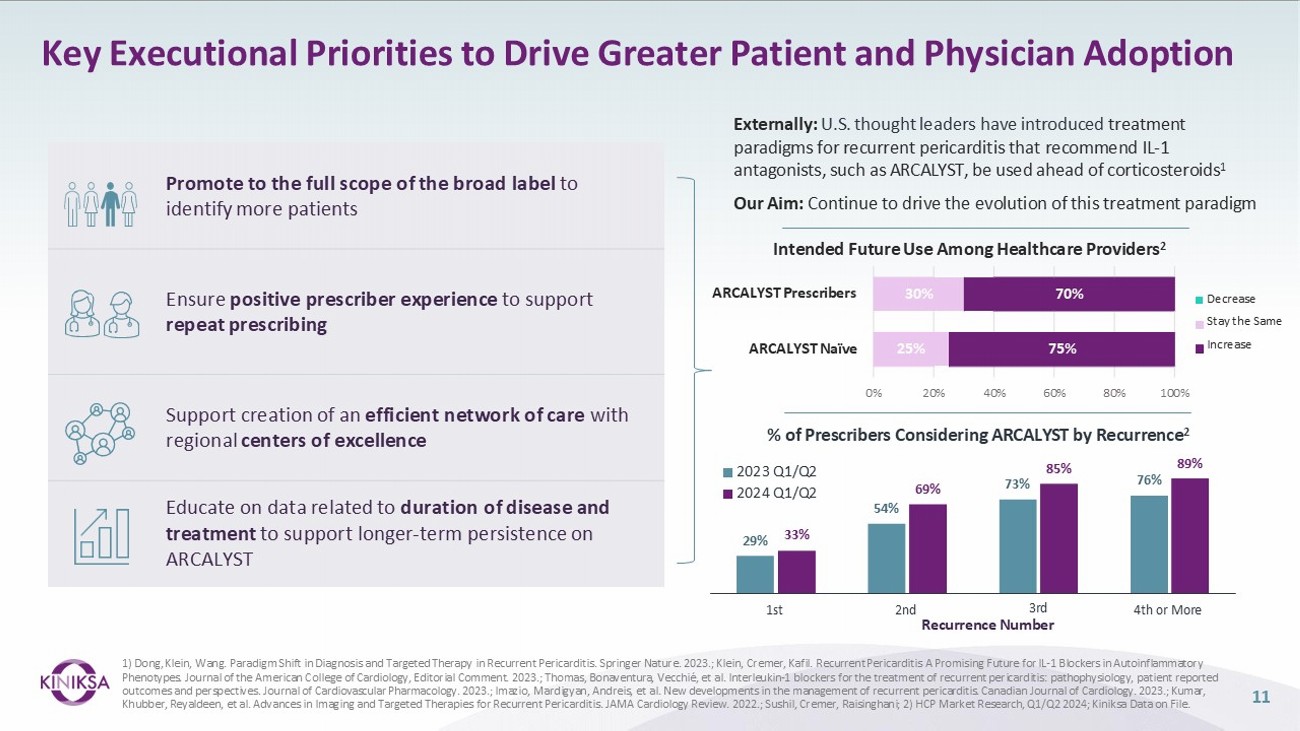 Strong ARCALYST Growth Driven by Robust Commercial Execution 10 Year - Over - Year Net Revenue Growth >3,150 Total Prescribers 1 ~820 Repeat Prescribers 1 >90% Payer Approval 1 (% of Completed Cases) ~30 months Average Total Duration of Therapy 1 >85% Patient Compliance 1 Key Revenue Drivers 1) Data since launch through 3/31/2025 $78.9M $42.7M $22.2M Q1 2022 Q1 2023 Q1 2024 Q1 2025 $137.8M ~13% Penetration of Multiple - Recurrence Target Population as of the End of Q4 2024